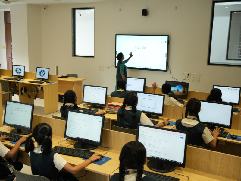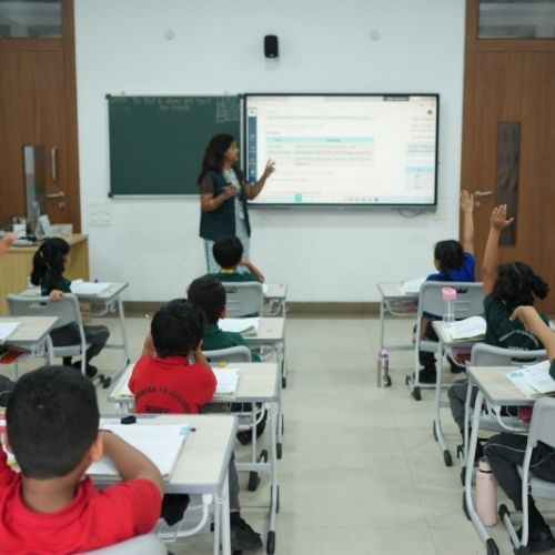 The classrooms at Evolve High are spacious, airy, and well-ventilated. They are equipped with digital smart boards, display boards,